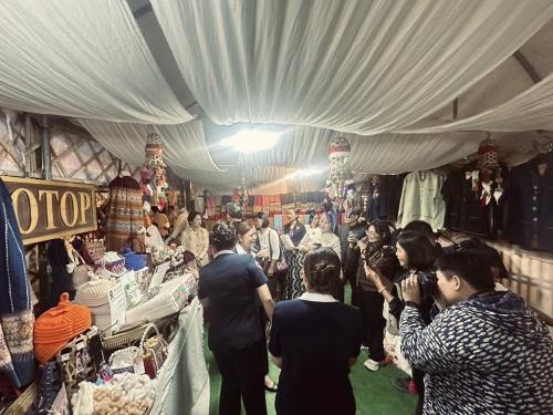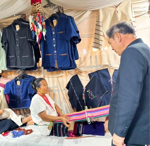 ในการนี้นายเกรียงศักดิ์ บุญตาปวน นายอำเภอแม่แจ่ม และนางพัชรินทร์ บุญตาปวน นายกกิ่งกาชาดอำเภอแม่แจ่ม พร้อมด้วย นางพัชรินทร์ ธรรมวัฒนะ พัฒนาการอำเภอแม่แจ่ม เจ้าหน้าที่สำนักงานพัฒนาชุมชนอำเภอแม่แจ่ม และเครือข่าย OTOP อำเภอแม่แจ่ม ได้ให้การต้อนรับนายรัฐพล นราดิศร ผู้ว่าราชการจังหวัดเชียงใหม่ ผู้ว่าราชการจังหวัดเชียงใหม่ รองผู้ว่าราชการจังหวัดเชียงใหม่ นางวิยะดา นราดิศร ประธานแม่บ้านมหาดไทยจังหวัดเชียงใหม่ พร้อมด้วย รองประธานแม่บ้านมหาดไทยจังหวัดเชียงใหม่ ในการเยี่ยมชมนิทรรศการฯ และให้กำลังใจผู้ประกอบการ OTOP อำเภอแม่แจ่ม