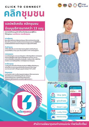 สำนักงานพัฒนาชุมชนอำเภอแม่แจ่ม เชิญชวนให้หัวหน้าส่วนราชการและประชาชนดาวน์โหลดแอปพลิเคชัน Click ชุมชน เวอร์ชั่นใหม่ ใช้งานง่าย ใช้ได้ทั้งประชาชนและเจ้าหน้าที่ ประกอบไปด้วยเมนูบริการ 13 เมนู ได้แก่